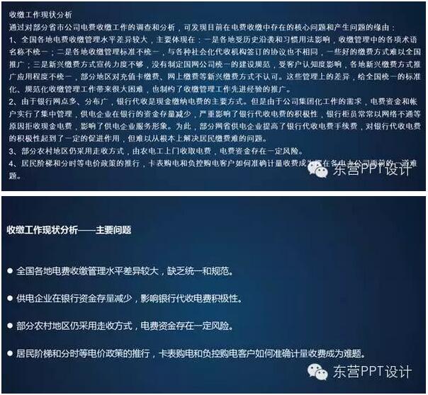 辅助性文字:在Word中我们还经常使用“截至目前”、“已经”、“终于”、“经过”、“但是”、“所以”等词语,这些都是辅助性文字,主要是为了让文章显得完整和严谨。而PPT需要展现的是关键词、关键句,不是整段的文字,当然就不需要这些辅助性的文字了。