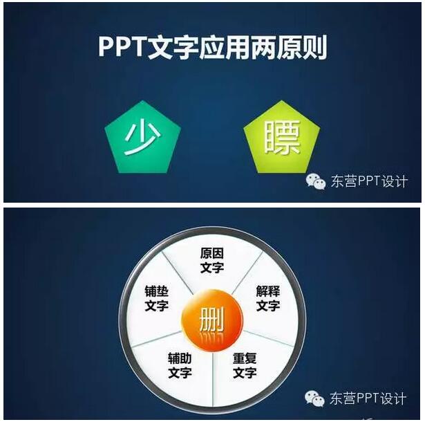 PPT设计师对文字的设计坚持两个原则:少、瞟。