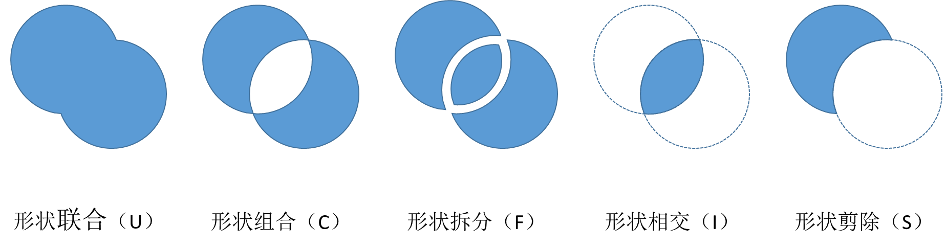 可以将多个形状合并,跟形状联合类似,不同的是形状重合部分会镂空。